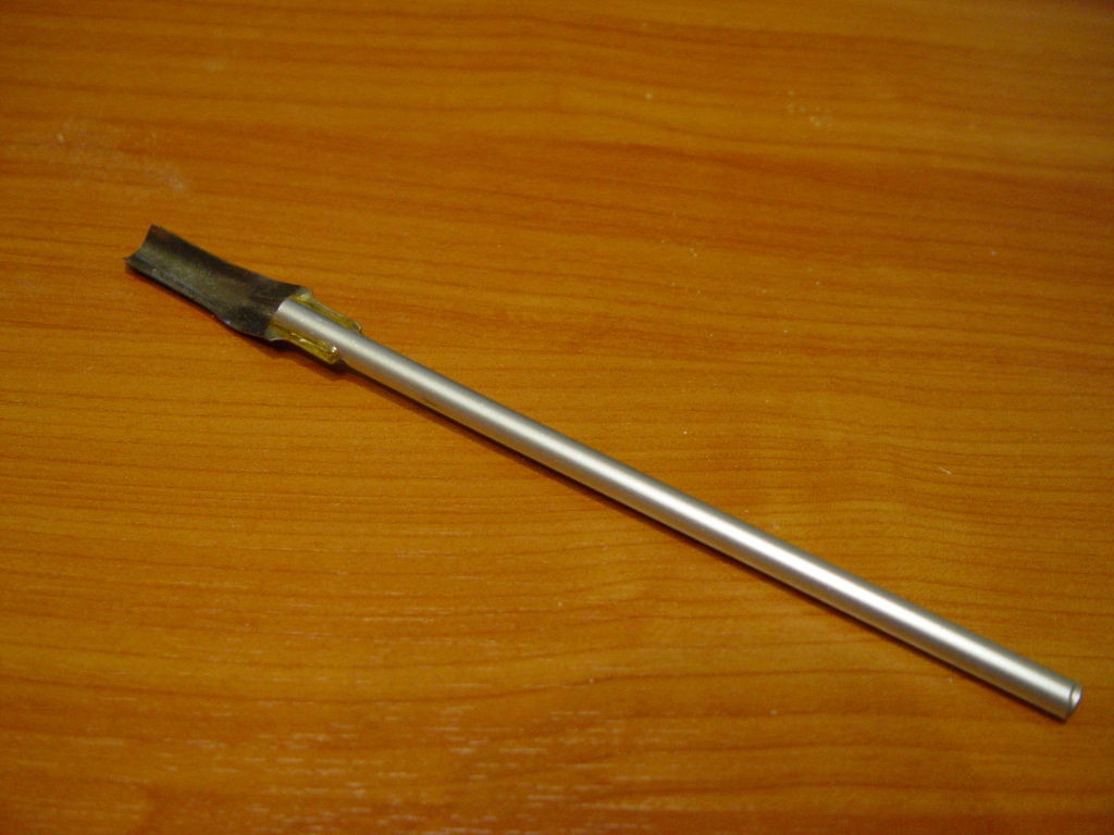 sablony je treba mat podlozene o hrubku potahu (posledny obrazok predchdzajuceho prispevku) aby sa spravne kryli s jadrom, drot natlacime cez vypalovaciu trubku a rezeme