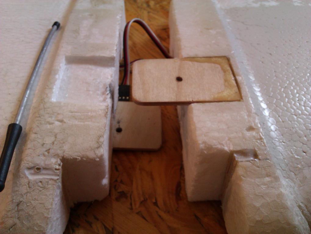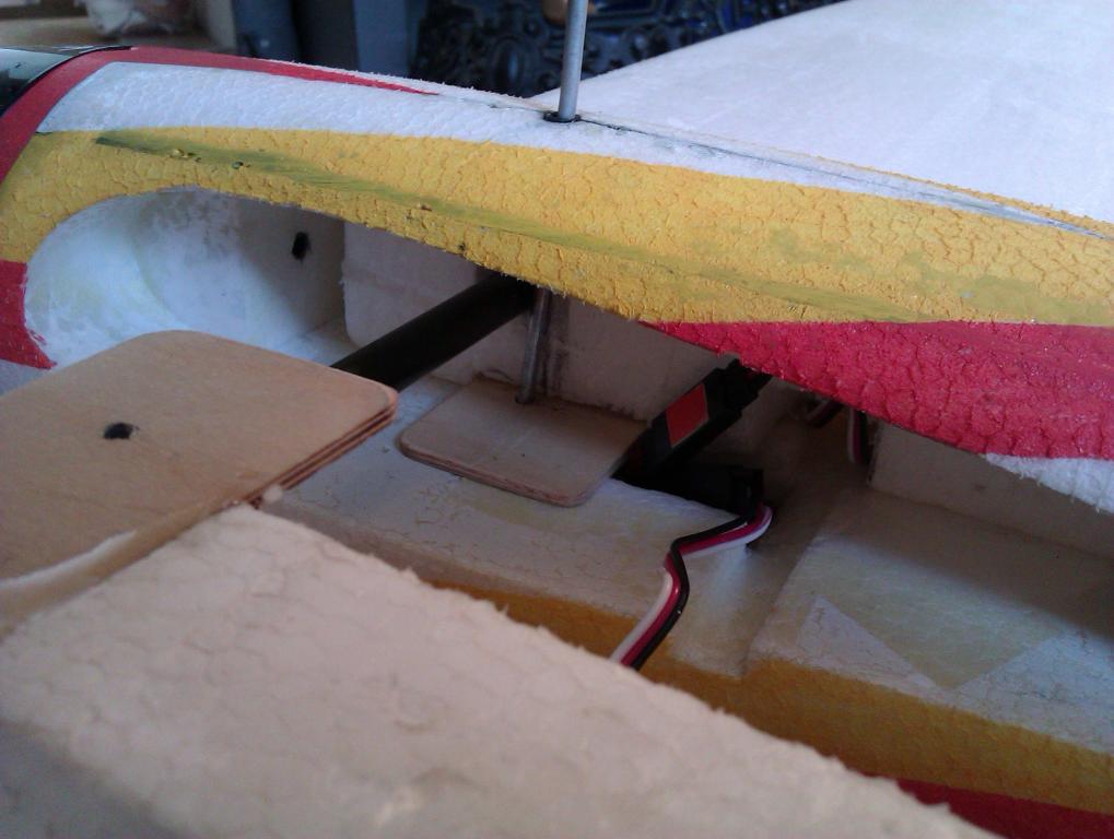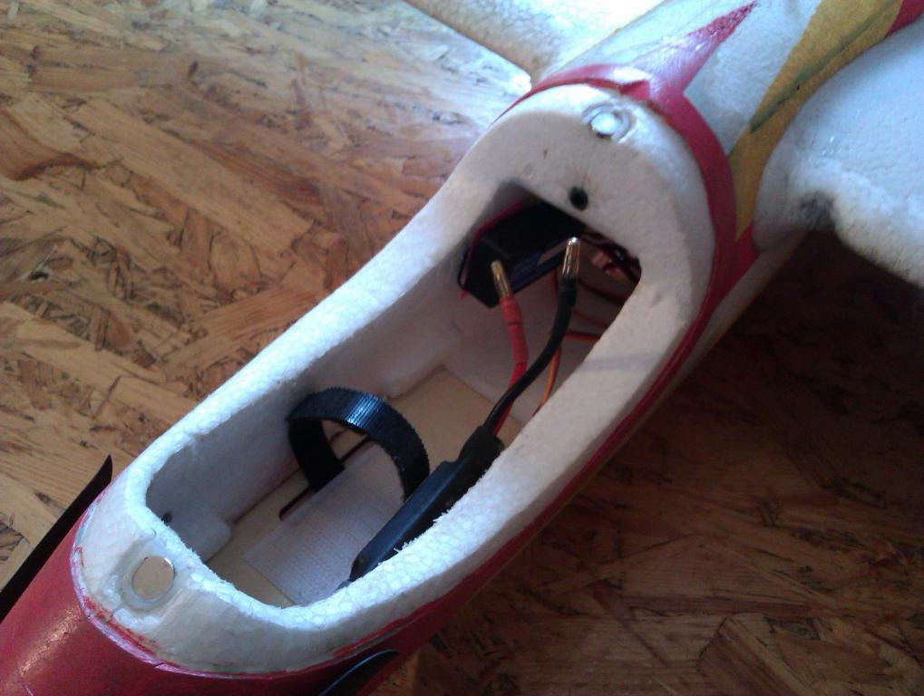 To zajištění křídel není špatný! Možná zkusím něco podobného taky spáchat. Ještě kdyby tam tak délkou vyšel nylonový šroub, to by se mi hodně líbilo - do trupu zalepit matku a křídla upevňovat tím šroubem... To musím promyslet a proměřit.