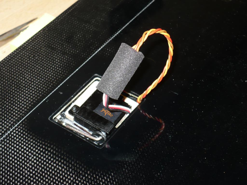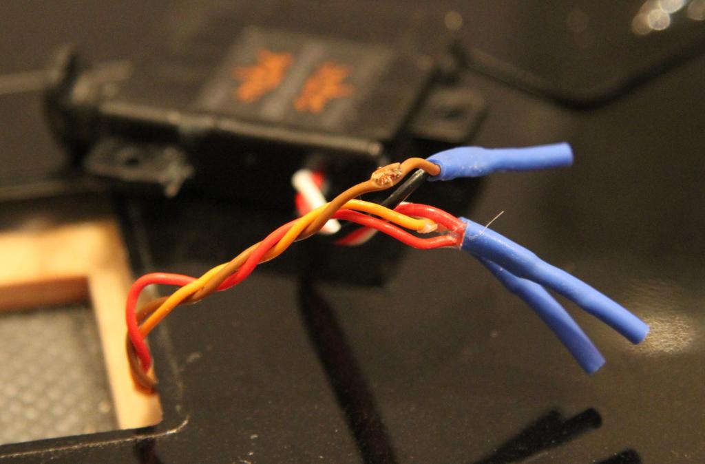 Z me neznameho duvodu je prodreny vodic od serva. Drzi to asi jen na par vlaknech (pokud je to vubec spojeny). Pritom byl ten kabel v kridle.