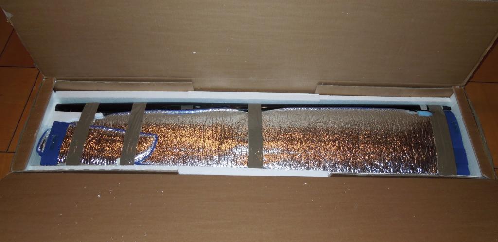 Já se vydal cestou nejmenšího odporu. V hobbymarketu jsem si koupil allu-fólii, která má zespodu něco jako miralon. Podle křídla vyrobil střih na balící papír a podle střihu vystřihl z fólie jednotlivé kusy. Ty jsem pak pomocí modelářské žehličky svařil, ale jen od špice do cca poloviny, abych po nasazení na křídlo přesně odměřil po svaření délku. Pak jsem použil právě zmiňovanou keprovku, širokou a tu našil s přehybem na konec futrálu, aby byl vstupní otvor chráněn. Zároveň jsem přišil i pásky se suchými zipy. Teprve nyní jsem dožehlil zbývající spoje a futrál na křídle usadil a doladil. Pak jsem svařený lem zastřihl, aby měl cca 5mm. Pak jsem vzal úzkou keprovku, přežehlil ji napůl a obšil jí svařenou hranu.