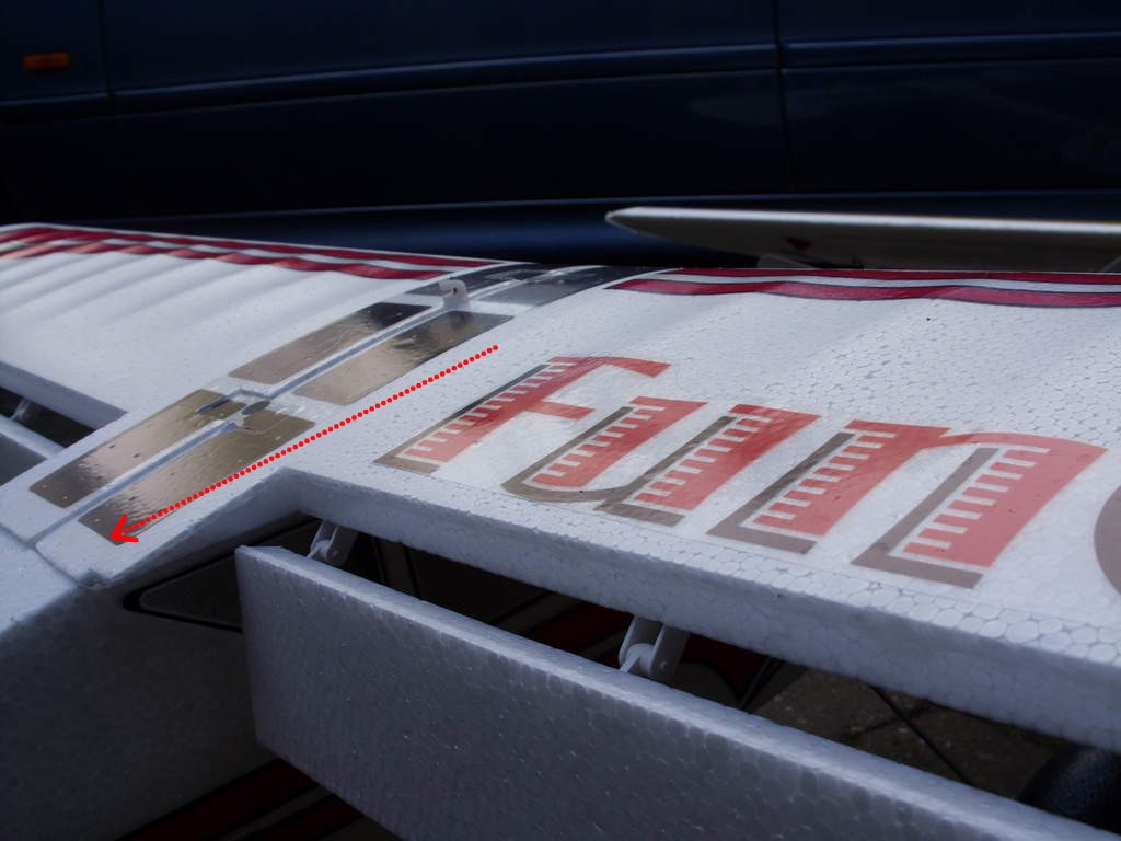 Jestli to dobře na tom obrázku vidím,tak jedno křídlo je u kořene silnější ! Mám to taky tak a zatím jsem to nechal být .