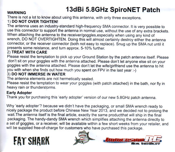Ještě jedna taková zajímavost z manuálu k patch anténě (bod 2, poslední věta)