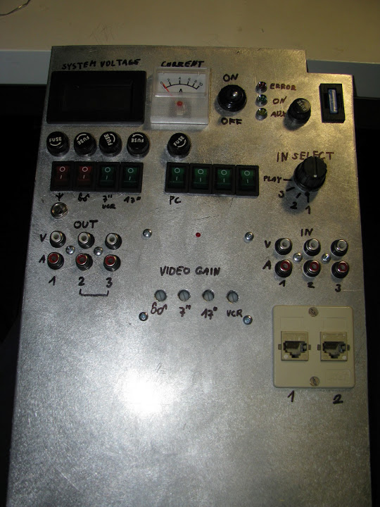 I když to nevypadá, nejde o nic moc složitého, jsou to jenom přepínače, pojistky a kontrolky a zdroje. Přijímače jsem si předělal na RJ45 konektory, mám 2,4GHz i 5,8GHz a každý měl jiný konektory, no na zabití