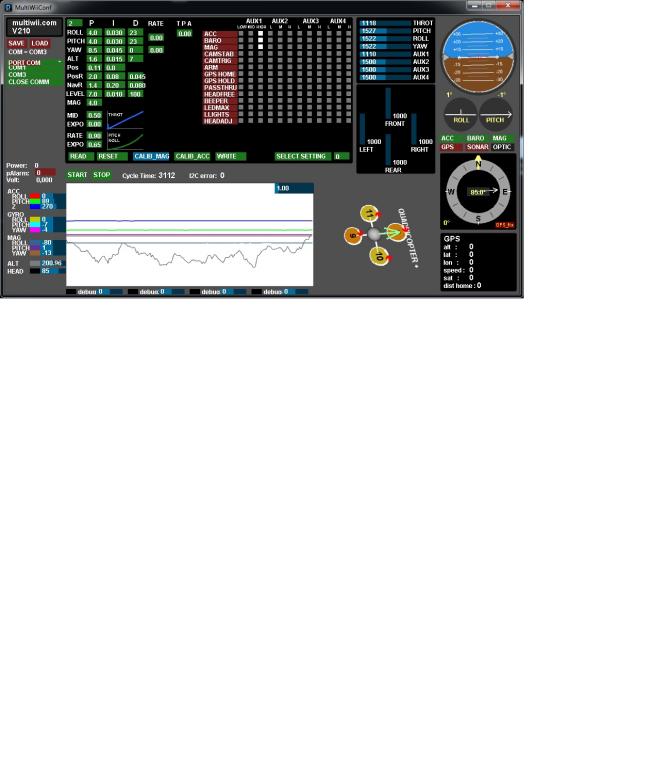 Pokud se připojím přes MultiWiiConf.exe načtu konfiguraci tak deska reaguje jak na pohyby deskou tak na pohyby pákami vysílače.