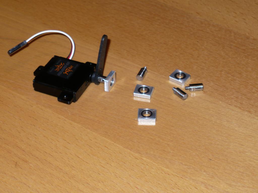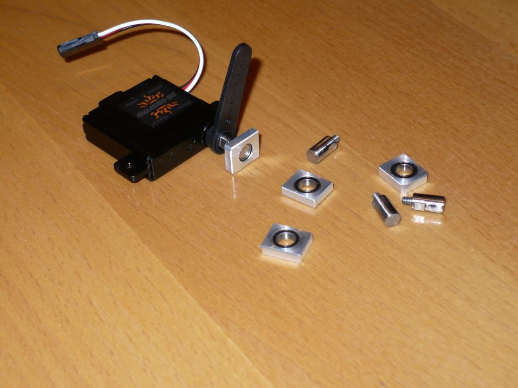 Je to jednoduché....na osičce je ploška na klíček (či kleště). Servo dáš do normálního rámečku s namontěným ložiskem a hřídelkou.