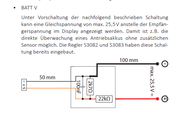 Hlavní důvod byl záměr měřit přijímačem GR-24 namísto napájecího napětí přijímače celkové napětí pohonné baterie cca 3 až 25,5V.