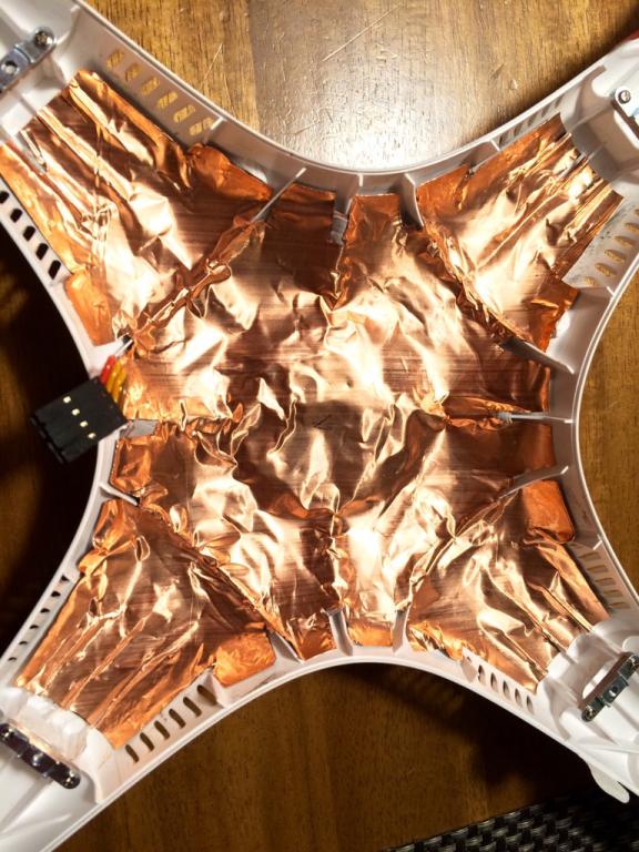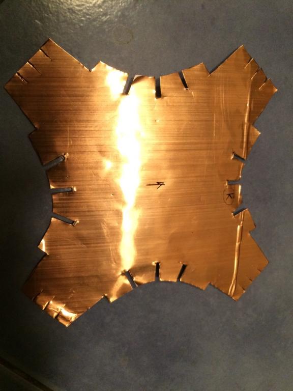 Tak jsem se dokopal předělat stínění a dávám sem fotky. Původní stínění jsem měl z hliníkový samolepící folie pro potisk v tiskárně. Ta ale nedržela a padala na větrací otvory. Tvar jsem dělal podle YT obkreslením škeble. Teď jsem použil měděnou samolepící fólii pro hudebníky. Tvar jsem vyrobil trochu větší a nastřihal pro lepší ohnutí. Po přilepení jsem ji odizoloval kaptonovou páskou.