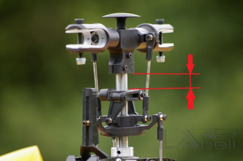 Snížit rotorovou hlavu(SNIPER LAHELI). Kromě kratších táhel ke gripům nemusím nic upravovat,jen spustím hřídel s hlavou dolu a pod hlavním ozubeným kolem ji vypodložím.Sniper nemá dole na hřídeli díru na šroub ale jen drážku na segrovku.Chtěl bych ji sesunout až na doraz ke středu aretace cykliky.O tu označenou část.Mechanicky mi to zatím připadá teoreticky funkční.Zkrácením táhel ke gripům by se zvýšil o trochu jejich sklon.Nevím nakolik by tahle nelinearita vadila třeba bezpádlové jednotce nebo funkčnosti.Samozřejmě pak projít znovu nastavením v programu.