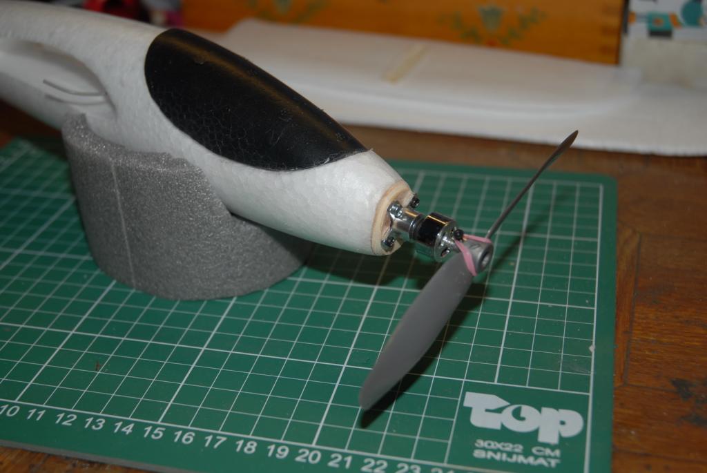 přes trup (od výřezu po motor) je udělaná 12mm průchozí díra, ve které je schovaný regulátor a kabeláž.