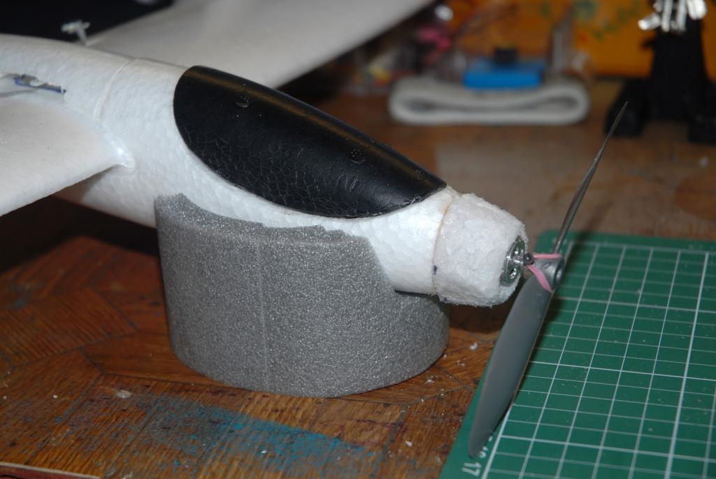 pod zadní šroubek dej gumičku, přetáhni přes házedlo a zapni do vlečného háčku, že je větroněk nakřivo nevadí, můj FC tak nahoru vynesl možná 15 různých házedel a malých radiáčků s celkovými možná 100 starty.