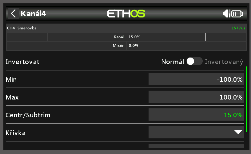 aktuální problém je, že jsem se vrátil z letiště a chtěl bych ( jak jsem byl u OpenTX zvyklý ) hodit Trimy do Subtrimů, abych měl zase celý rozsah trimů k dispozici - v OpenTX jednoduché, v Ethosu jsem to nenašel