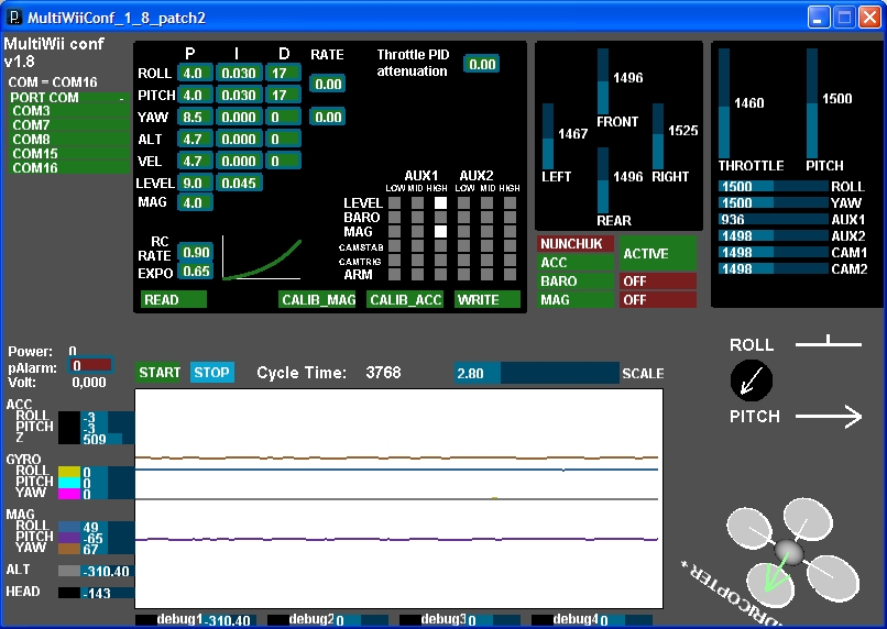 Ten BARO síce nemá priradený kanál, ale nemení ani hodnotu ako takú. Tak isto hodnotu nemení ani ACC. Bez vrtúľ sa menia otáčky v celom rozsahu plynu, kdežto s vrtuľami to trochu zdvihne otáčky a potom už na plyn nereaguje.