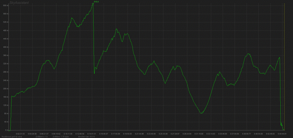 A ještě jeden grafík ze včera . I s Coredem to jde z hodně malé výšky. Z 26m do 627m .
