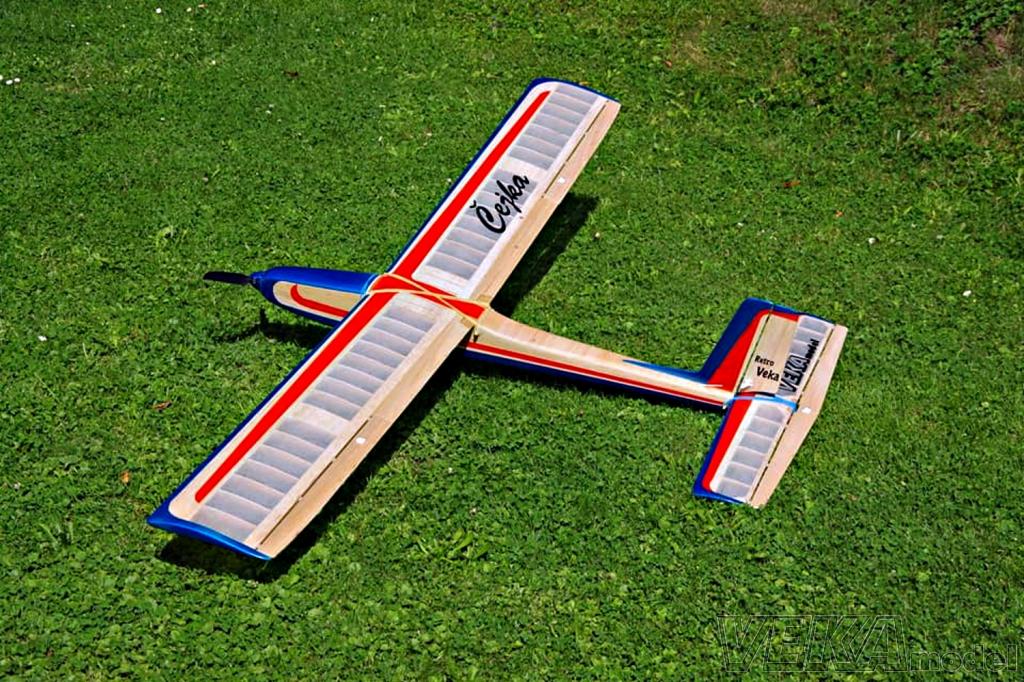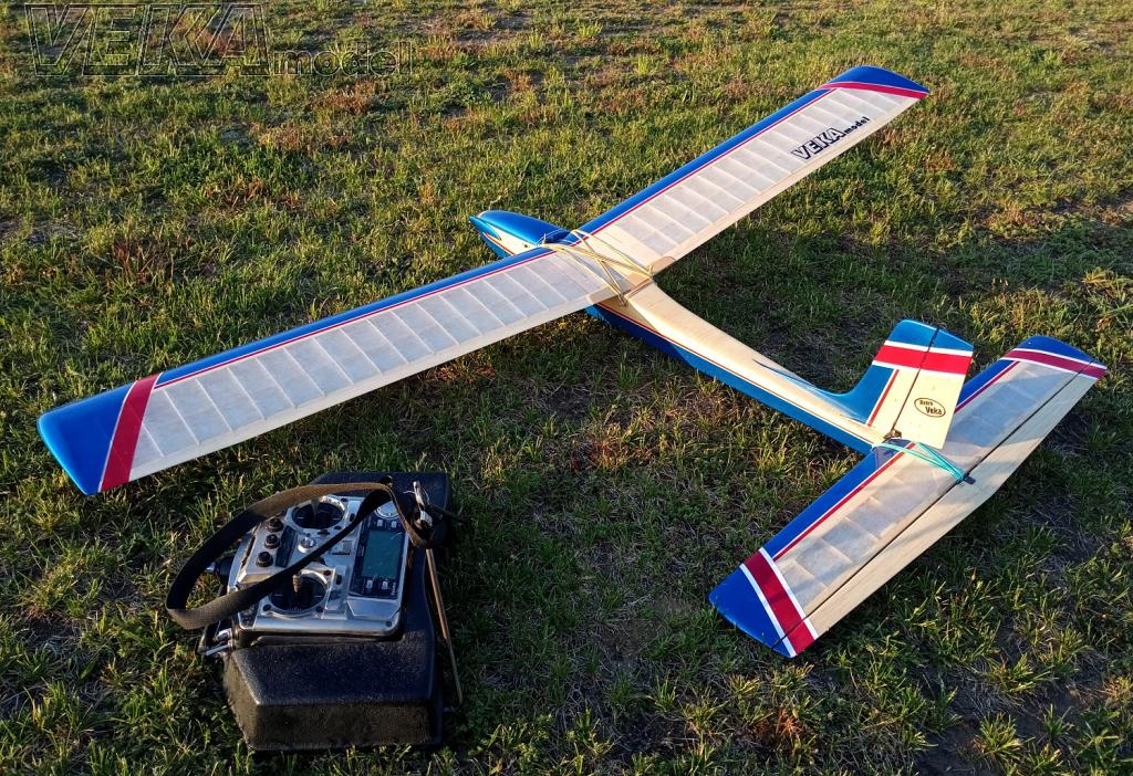 Děkuji. Křídlo mám 160 cm, se vzepětím 4 stupně. Nebyl jsem si jistý, jestli éro uřídím, tak mám i křidélka. První let mě velmi mile překvapil. Hodné letadlo, nebylo třeba trimovat, klidný let.
