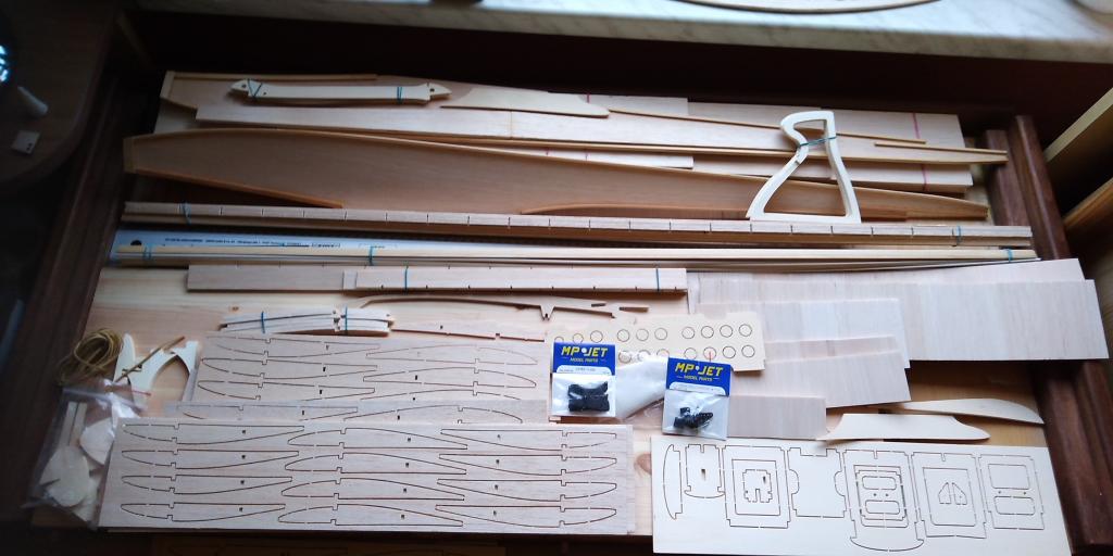 Čejka dorazila v nadstandatrtní kvalitě v sestavě v úplné, ,,Tuplované ,, stavebnice .Objednal jsem si křídla 2x . Kvalita všeho co přišlo v napěchované krabici je neskutečná. Balza překližka i lišty opravdu ve výběrové kvalitě.Smrkové lišty se všemi léty pěkně vodorovně. Vrchní i spodní potahy trupu již slepeny.Na bočnicích jsou již nalepeny nosníky a obě vytvarované do oblouku ke špici. Potahový matroš. Navíc a s tím jsem vůbec , nepočítal odtokovky jsou již zfrézované i naříznuté pro zasunutí žeber.Jsem prý 2.komu byla stavebnice v tak dokončených dílech zaslána. Jsem tomu rád bude méně prachu a hlavně chyb v geometrii. A abych nezapomněl, díly jsou velice čisté, frézování bez otrepu. Žádná,, opálená vyuzena větev.. čínským laserem. Co se bižuterie týká je tam všechno, bovdeny ,závěsy i poutácí guma i pákování i ustřižky skleněné tkaniny. Prostřednictvím Petera přišel Ježíšeek uprostřed Srpna .