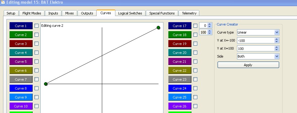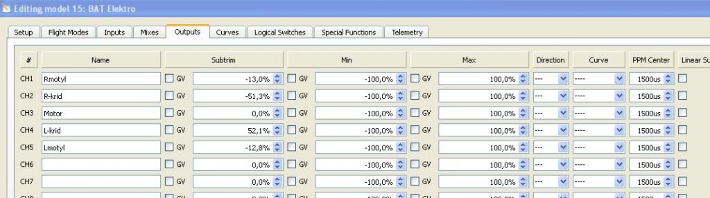 Ale víš že zpomaluješ pohyb serva v celé dráze ve směru +100 do -100 za předpokladu, že je přepínač SG uprostřed nebo SG dole?
