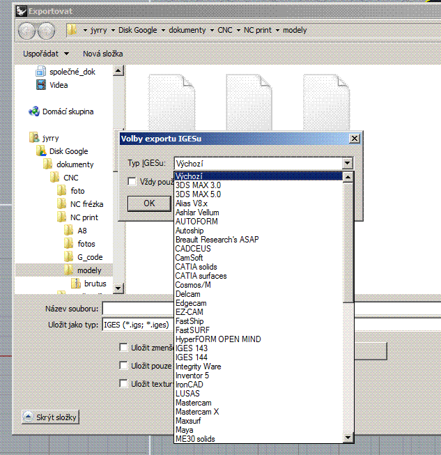 Ty exporty do IGESu .... no... tady je vidět něco kolem poloviny možností...