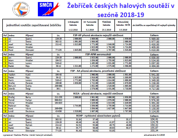 Halová akrobatická sezóna 2018-19 sestavy, termíny etc.