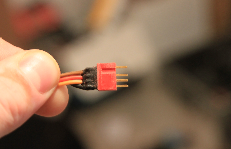 Tim byly serva na svych mistech a k dokonceni zbyvalo jen zalepit konektory do trupu. Vyrobce jiz dava k letadlu hotove servokabely. Na jeden strane jsou cervene 4 pinove MPX a na druhe strane standardni servo konektory. Kabely jsou s poradnym prurezem, takze to i neco vazi a dlouhe jsou tak, ze si prijimac v trupu muze majitel nainstalovat temer kam chce (v rozumnych mezich, nikdo asi neceka, ze ty kabely vystaci az ke komridlum). Diry v trupu na konektory jsou pripravene. Chce je jen lehce prebrousit, aby tam konektor sel vlozit vcetne lehke vrsty epoxy s mikrobalony. Konektory maji maly rantl, takze pred lepenim je dobre jej obrousit - jinak by musela byt pri instalacni dira v trupu zbytecne s vuli. A ze by nekdo instalovat konektory do trupu z vnitrni strany (kdy by pak rantl krasne drzel u trupu) -to as nikdo asi zkouset nebude. Kdyz uz sel konektor zasunout v pohode, natrel jsem jak trup tak kridlo separatorem (pouzil jsem oblibenou pastu Cirine). Lepidla jsem pouzil tak akorat, abych jen zafixoval konektor v trupu. Po vyvrdnuti jsem kridla opatrne sundal, rozmichal znova epoxy s mikrobalonama a otvorem pro spojku kridla v trupu jsem konektor z vnitrni strany trupu poradne oblepil. Tim je tam krasne zafixovany.