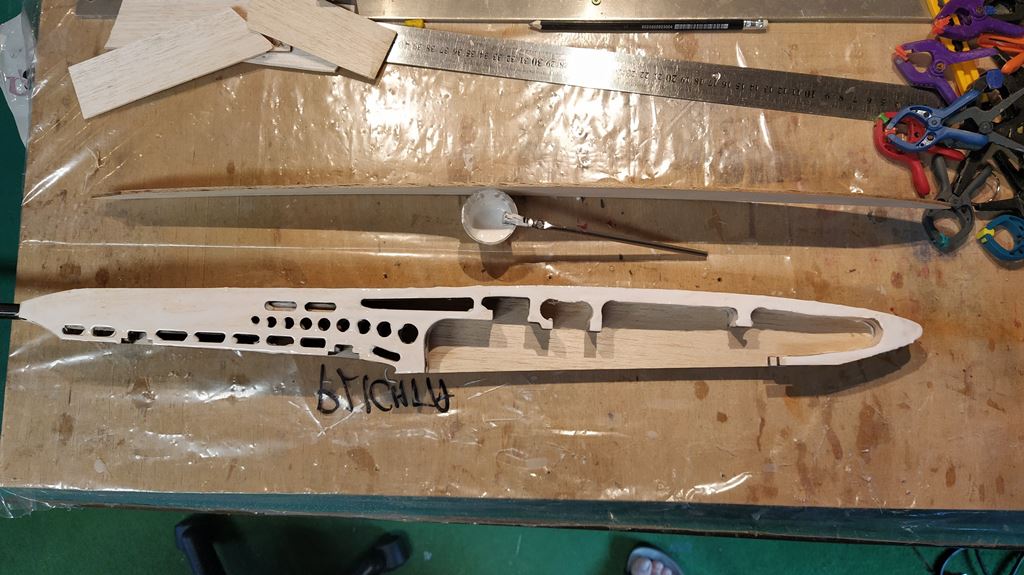 Dobre majove odpoledne preji. Stavim a snazim se vymyslet neublizne reseni pridavneho balastu ,do tohoto modelu ,do vetrna. A mozna ,ze uz vymyslim vymyslene. Az budu mit presne urcene teziste vytvorim asi kolmou sachtu do trupu.