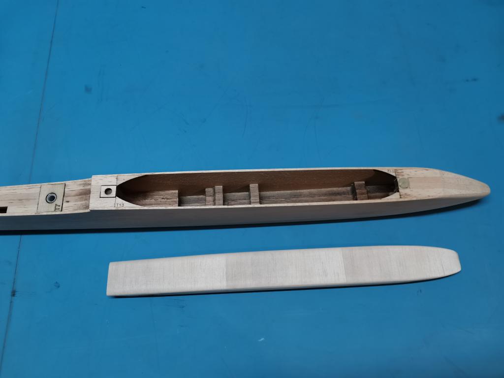 pak jsem lepil bočnice a to tak,že namažu trup ale předtím bočnice zvenčí navlhčím vodou, tím se přirozeně prohnou do směru jak potřebuji: