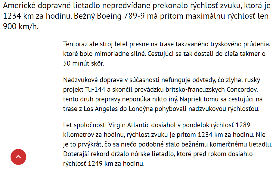 *Americké dopravné lietadlo nepredvídane prekonalo rýchlosť zvuku, ktorá je 1234 km za hodinu. Bežný Boeing 789-9 má pritom maximálnu rýchlosť len 900 km/h.*