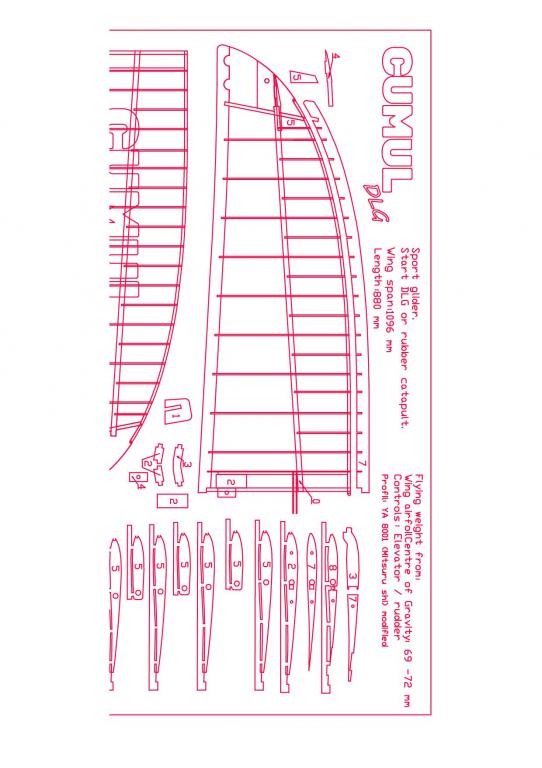 Cumula DLG 1,1 m hmotnost 180g. Jináč už existuje i o rozpětí 1,5 m. Hmotnost 220g.