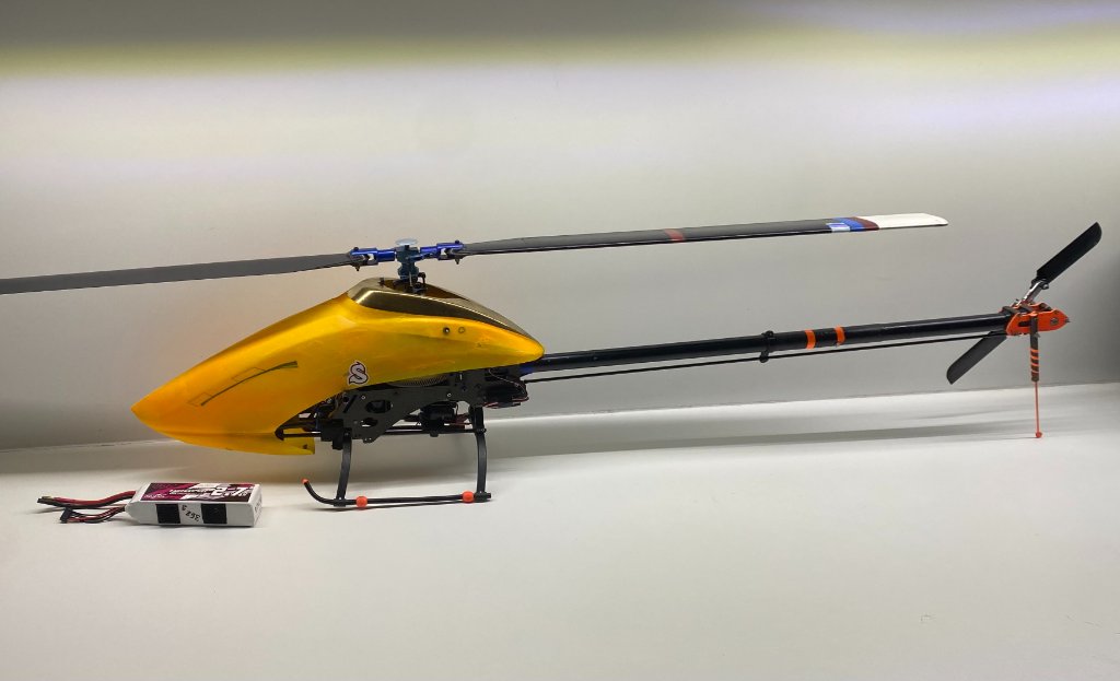 V létě jsem testoval a létal se Sniprem s ještě více prodlouženém (řemínek z Trexe 600), tak aby se vešly listy Rapid 550 s větší vrtulkou, Xnova 2820-890, LiPo 5S 2700, otáčky 800 až mas 1400. Váha 1770g - viz foto. Létá to pěkně (a dá se i větru), ale obecně klasika Logo 600 v UL úpravě létá celkově lépe (s Xnovou 3220 - Lipo 6S 3300). Sestavil jsem i další Logo s Pyrem 600/1200 (Pyro s hřídelí 6/5 pro pastorek 12z/pr. 5 mm/modul 0,7, aby vyšel převod 1:12,75) a letá to taky moc pěkně (6S 4000).