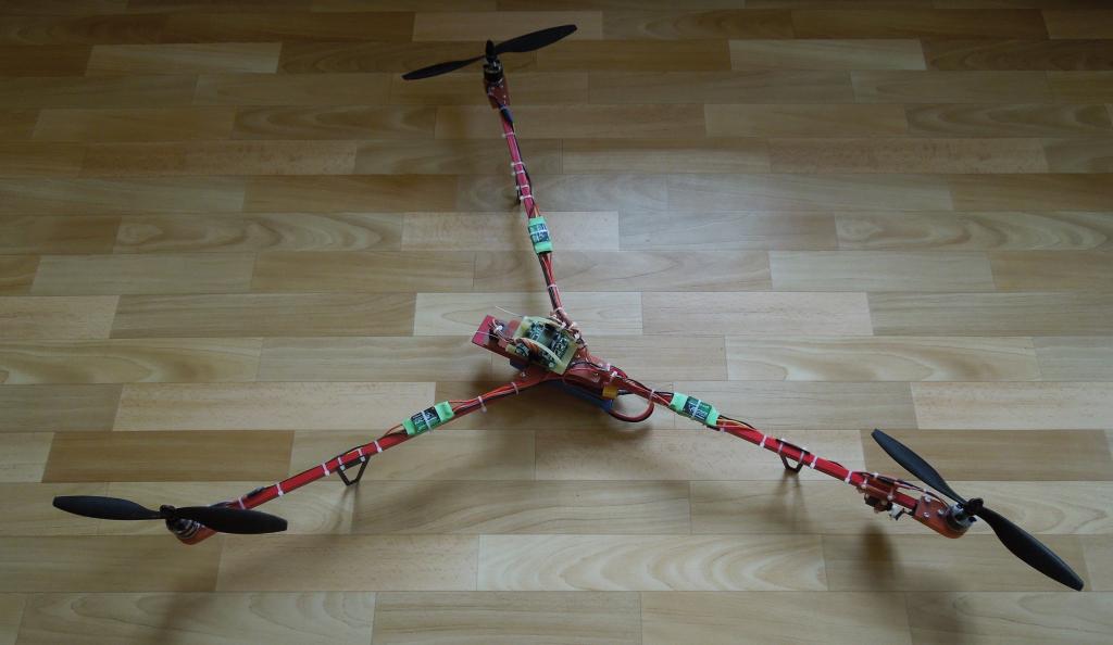Ramena mají výstupky (něco ve stylu čelního ozubeného kola), aby držely ve správné poloze, jsa držená pružinou. V případě větší síly (buď při skládání rukou koptery pro přepravu, nebo při havárii) se překoná síla nutná pro držení ramen, a přeskočí to z těch zubů, přes sílu pružiny.