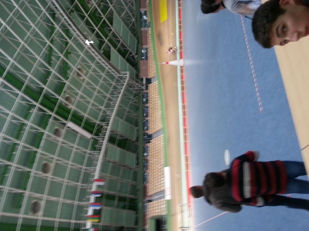 Po příjezdu jsme jako první šli na recepci hotelu, kde jsme si odebrali klíče a šli hned do haly. Že je hala kousek, to jsme věděli, že je ale bez přehánění 10-15m od hotelu, to již bylo překvapení. Když jsme přišli do haly,okamžitě nás praštilo několik věcí do očí. Nejen úžasné poháry vystavené u vchodu a cyklisti jezdící na dráze kolem letové plochy, ale i výška stropu +- 35m. Posléze jsme se přivítali se všemi známými a seznámili s neznámými :D.