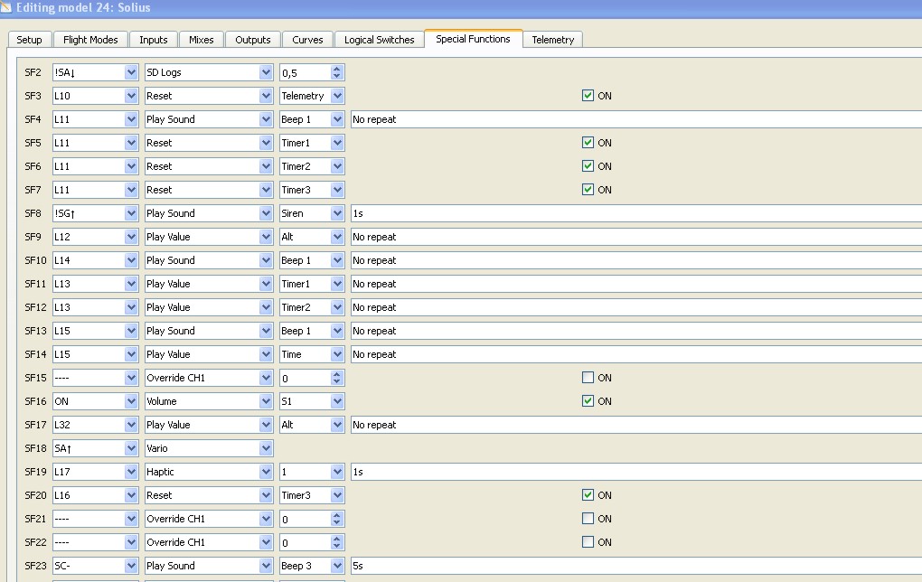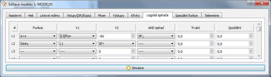 Pokud ti to pomůže takto by to vypadalo v rádiu (OpenTX 2.1.8 ):