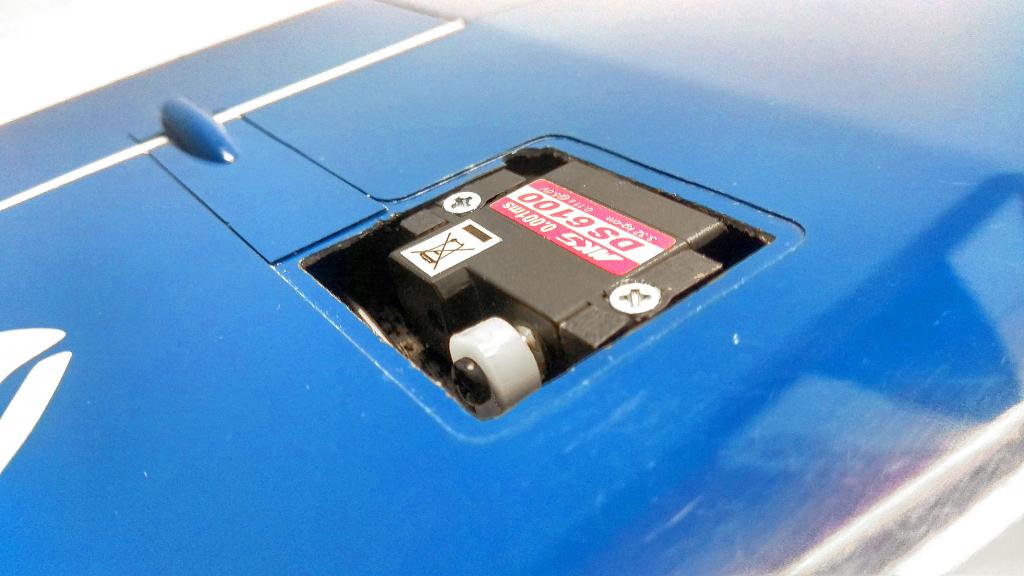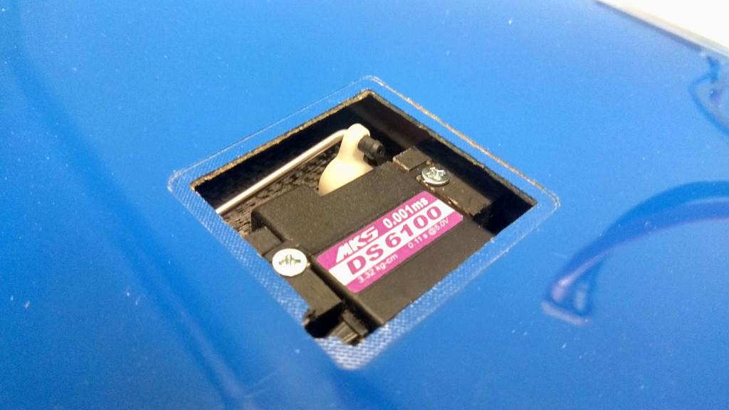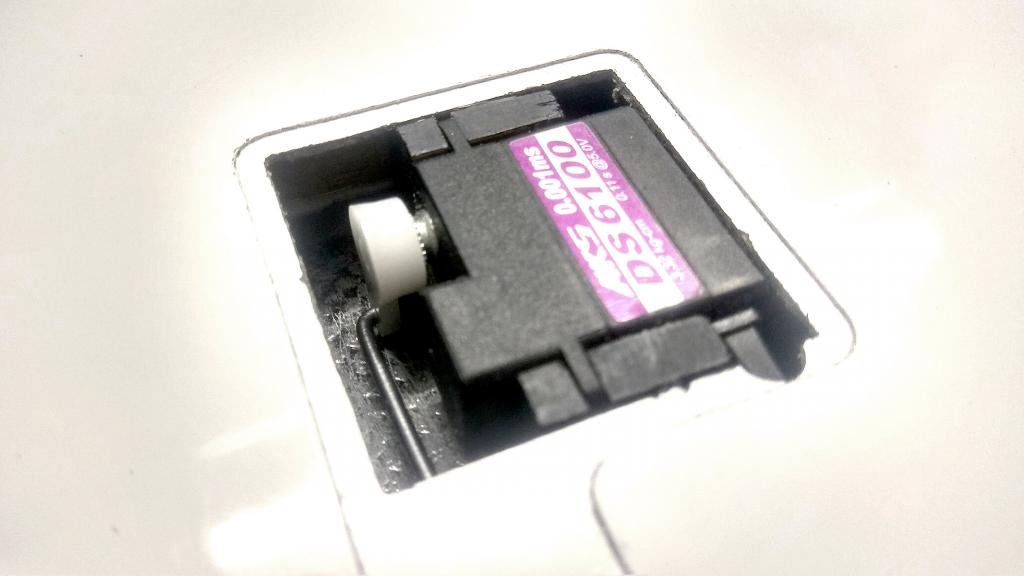 Servo je tlusté 10 mm, páku serva mám s ramenem 7 mm. Páka tedy přečuhuje servo. Profil je v místě hřídele serva směrovaného k odtokovce tlustý něco kolem 11 mm. A je to navíc úplně jedno, jestli je to otočené tam nebo onam ...