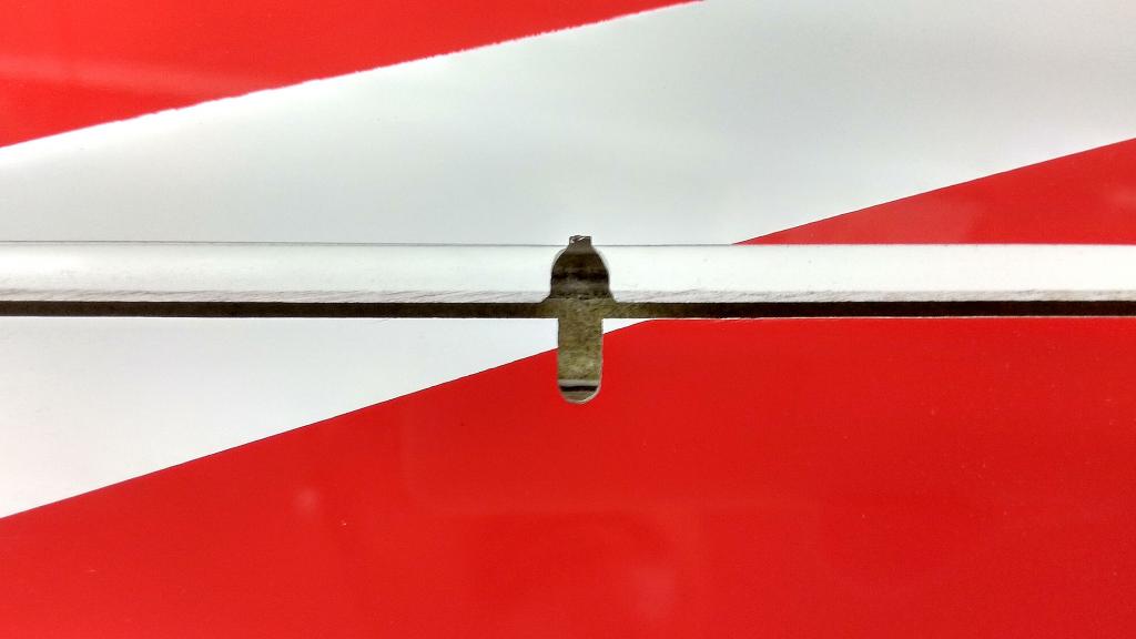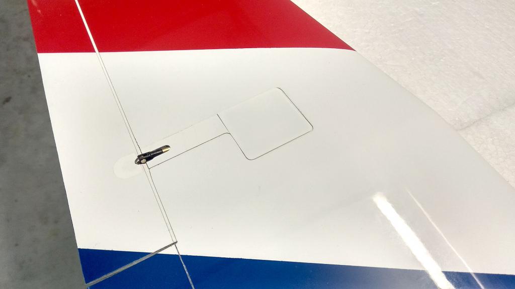 Samozřejmě původní krytky křidélkových serv jsou k ničemu, nemá smysl je použít přímo, nicméně dají se použít jako materiál na nové krytky, které by seděly. Jde to udělat na lajdáka, úplně se na to vyprdnout a jen zakryt servo, ale to není můj styl. Bohužel jsem neměl dostatečně velký kus laminátu, který by to celé pokryl najednou, vyšlo to ze dvou kusů. Z původní krytky jsem říznul její vypuklý začátek a udělal minikrytku pro pokrytí vidličky. Vidlička nakonec moc z profilu nevyčuhuje, přesto je vidět. Minikrytka to schová, ale je tam prostě něco navíc. Na fotkách to ještě není přilepeno, je to jen zasušeno, aby byla představa, jak to bude vypadat. Tak poraďte, s minikrytkou nebo bez …