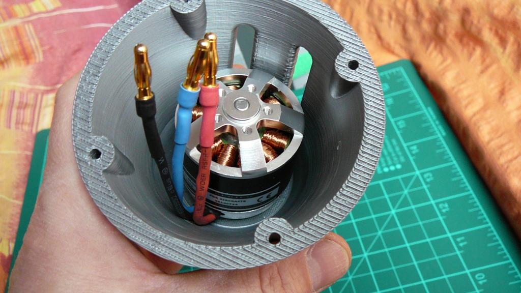 Vývoj čumáku není pro mě snadný, hlavně to neumím tak úplně nakreslit. I když teď se to z toho torza nezdá, tak to přechází do uřízlé špičky kulatého průřezu, ale na to nemám nervy to úplně celé tak dlouho tisknout (jen kvůli ověření že to půjde zepředu našroubovat do dist. sloupků). Hlavní je, že přišroubovat to fakt šlo. Samotný čumák chci udělat dvou nebo trojdílný, nejen kvůli délce tisku, ale i pro možnost změnit potlačení motoru jen výměnou přední části. Nebo dotisknout jen nabořený díl místo celého čumáku. Nebo upravit/prodloužit/zkrátit některou jeho část.