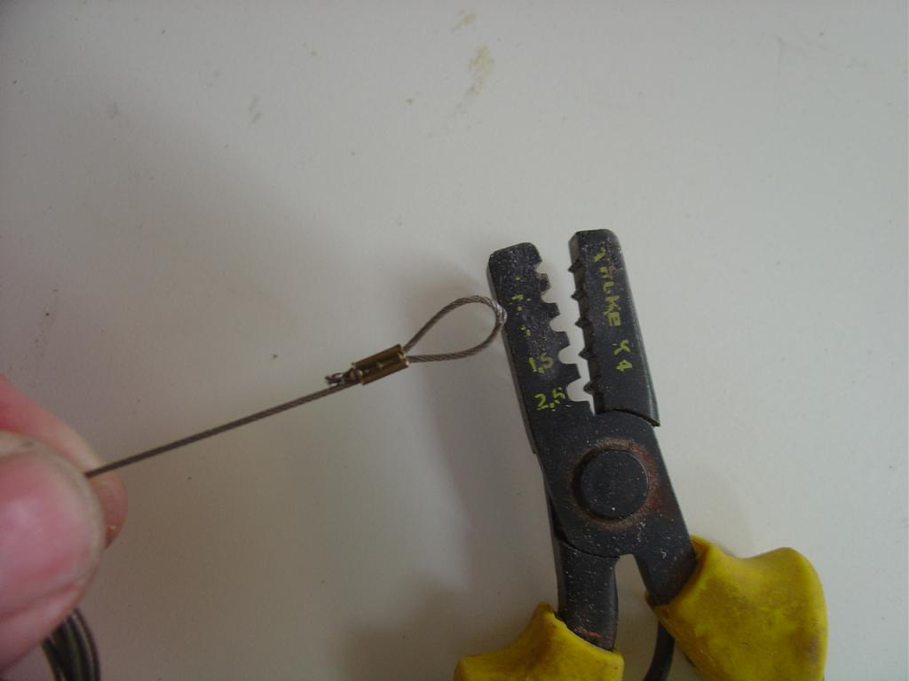Asi bych použil radši kovovou vidličku, nebo do otvoru v páce dát mosazný nýtek. Nejlepší je ale ta vidlička s provrtaným čípkem, protože tam se to lanko nešoupe a otvor je namáhaný jen tahem lanka. Kdežto v té páce se to lanko při výchylkách v tom otvoru šoupe a funguje jako pilník.