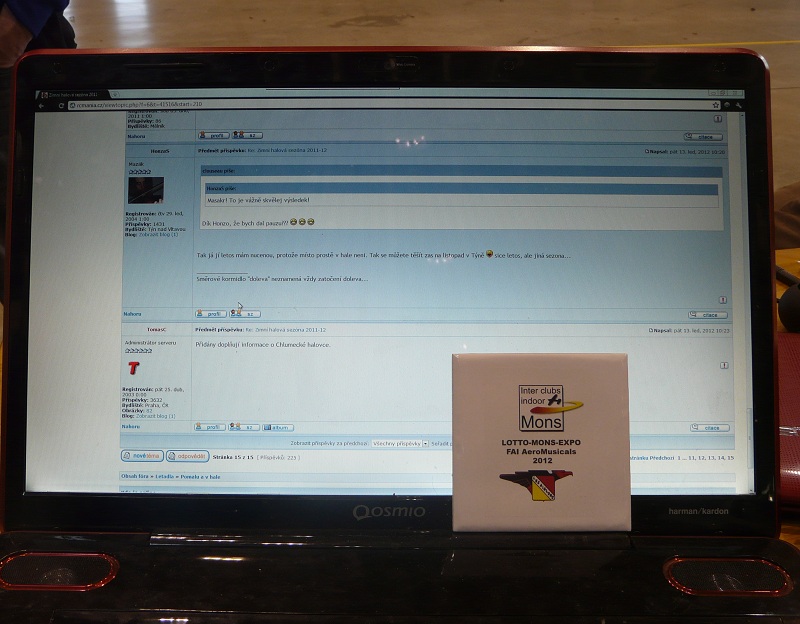 Hala je opravdu vysoká, ale její rozměry na plochu jsou jako klasická větší hala (cca 40x30), Já jsem po velkém boji proti naprosto divně létajícímu Belgičanovi nad ním zvítězil, a posunul se na 12. místo, Marek obsadil s Markusem Zolitschem 5., dojeli jsme před 2 hodinami, takže pohoda