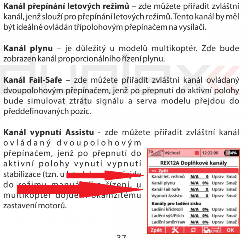 Mám přijímač Rex7 Assist, nastavení v pohodě, letadlo létá, ale nejde mě nastavit na momentový přepínač bleskové sepnutí záchrany - srovnání modelu do roviny a zabránění pádu.
