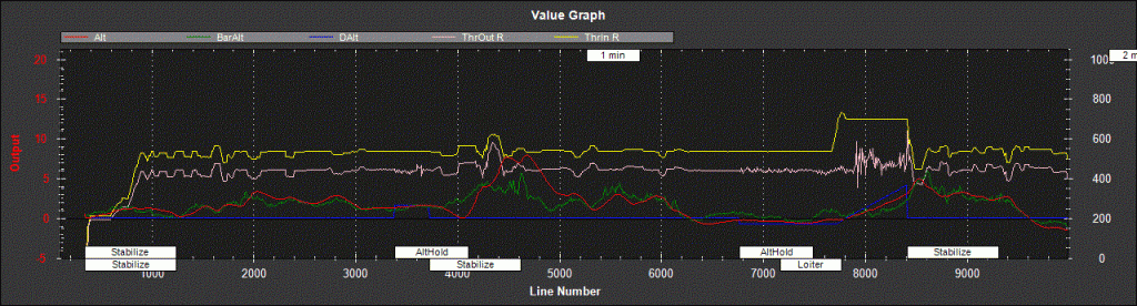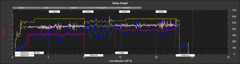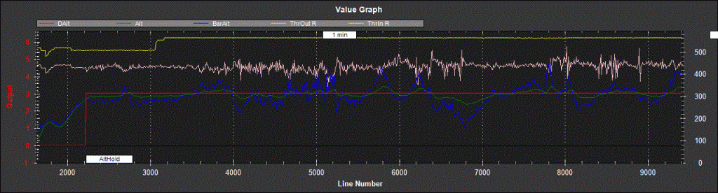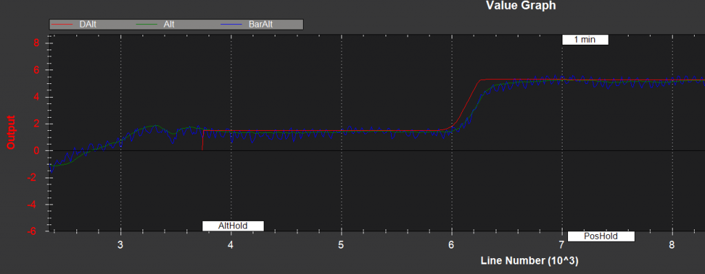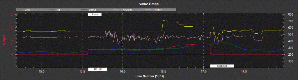 Z toho grafu je to zle vidno - chcelo by to vyselektovať len detail pre ALTHOLD, nech je vidno, že aká je DAlt (výška, na ktorú chce APM koptéru ustabilizovať) a Alt, resp. tendencia odchylky medzi Alt a DAlt.