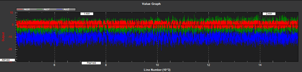 Len pre porovnanie, v prílohe sú moje vibrácie, počas toho ako mi vrtulník v ALTHOLD pekne kopíroval požadovanú výšku - použitý FW 3.2. Vibrácie boli také veľké, lebo v tom čase som mal na hlavnom hriadeli excentrické ložisko dosky cykliky...