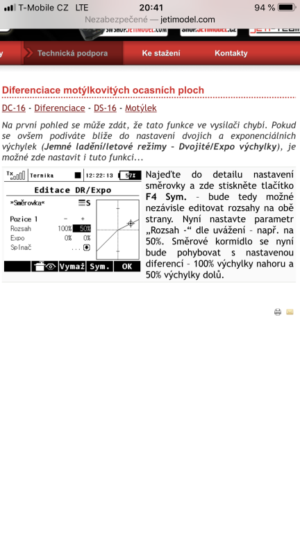 Po delší době jsem vzal DS 16 do ruky a za boha nemohu přijít na to jak nastavit u motýla dif.směrovky kdy při pravé zatáčce potřebuji větší výchylku na pravém motýlu než na levém.V mixu křid-směr to nastavené mám,ale samostatně na kniplu směrovky jsem to už nějak zapoměl díky