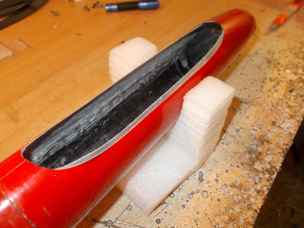 Už jen dotvrzuje lem kabiny (4 vrstvy 110ky skla)....a může si to vzít. Nové (jeden) bowden pro V tail se dá až po nástřiku a vybavení též.
