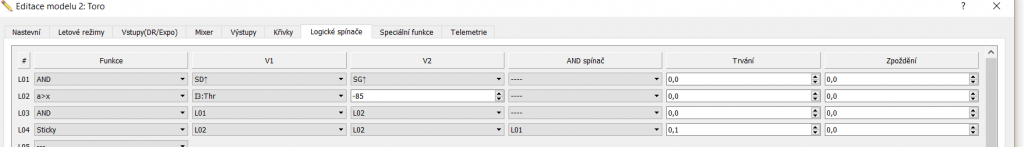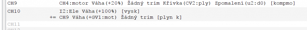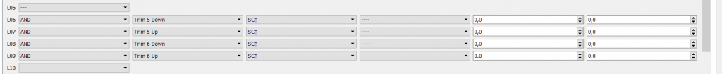 Podmienka je nastavená tak, aby trim pracoval len ak je spínač SC od seba a letový režim FM1 - motorový let.... pretože funkcia kompenzuje vyosenie motora.....