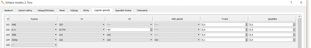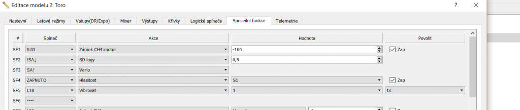 OpenTX sa odlišuje od zvyšku rádii možnosťou využitia log. spínačov a špeciálnych funkcii a tým si uľahčiť ovládanie a zdokonaliť telemetriu..... Po prechode z Taranisu na Horus som trošku "učesal" šablónu mojich log SW, nakoľko ich používam u všetkých modeloch.