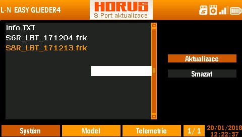 Petronel píše:Ahoj, prosím Vás o pomoc. Pan Urbánek mě poradil, že můžu provést aktualizaci FW S8R přes rádio. Použil jsem poslední FW ze stránek RC Studia a po přetažení souboru do Horuse přes kartu mě aktualializace nefunguje. Nevíte, kde dělám chybu? Používám FrSkyOS.