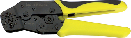 Ty kleště budou dost dobré, ale ještě to není ono. Když se dobře podíváš na kreslené obrázky konektorů ke krimpování vedle kleští, všimni si provedení části, která se svírá na bužírku. Jsou to dva protilehlé výběžky, které se ohnou stejným způsobem jako část na žílu vodiče, do protilehlých obloučků (bohužel nejsem vybaven na to, abych přiložil vlastní skicu). U servokonektorů je tomu jinak (na fotce, kterou jsem minule přiložil je to vidět). Ty dva výběžky na bužírku jsou šikmé, při krimpování netvoří obloučky, ale bužírku "obejmou" a díky svému sešikmení se nepotkají. Já používám kleště Harting (obrázek), ale byly nekřesťansky drahé, až se to ostýchám napsat. Zato bych klidně doporučil vychytávku, kterou jsem si na nich udělal a ta by asi šla relizovat na každých: na jednu čelist jsem připevnil přes distanční podložku a kousek plošného spoje (asi bych to musel nafotit, ale je to jednoduché) kontaktní kolík coby protikus krimpované dutinky v ploze dutinky v sevřených čelistech. Dutinku na něj nasunu, ta mi drží v zaručeně správné ploze a můžu si všímat jen připojovaného vodiče. Krimpuju celkem dost a tudíž mi to rovněž celkem dost zjednodušilo život.