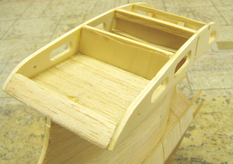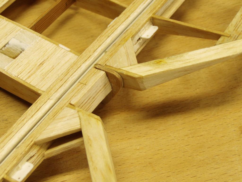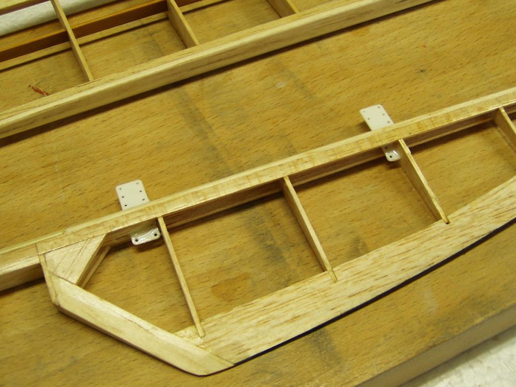 Packa pro ovladani pohyblive casti vop je z bukove preklizky 2mm.Ze stejneho materialu je i vodorovne vlepena vyztuha ,prenasejici kroutici moment z packy do konstrukce kormidla.