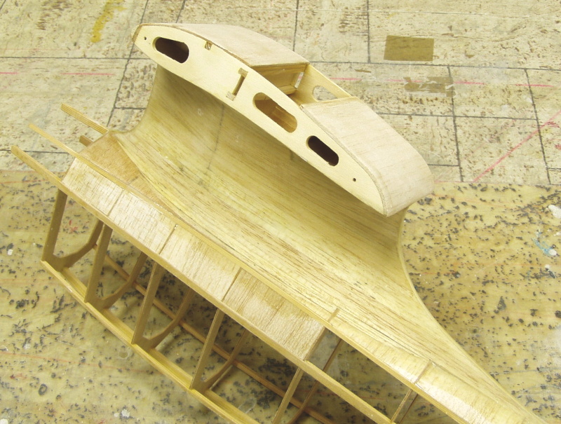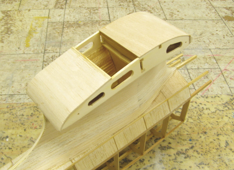 Lepení uzavíracích plátků balsy na vršek pylonu je už zábavnější :