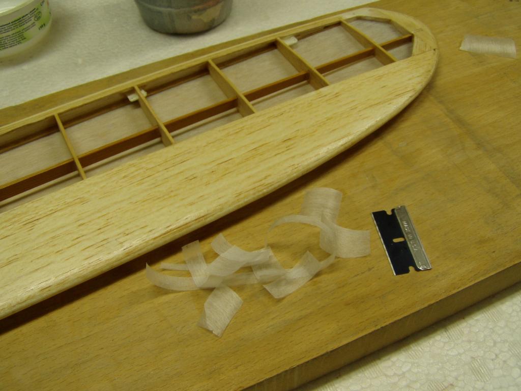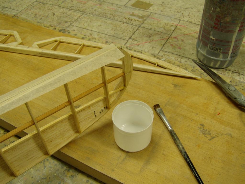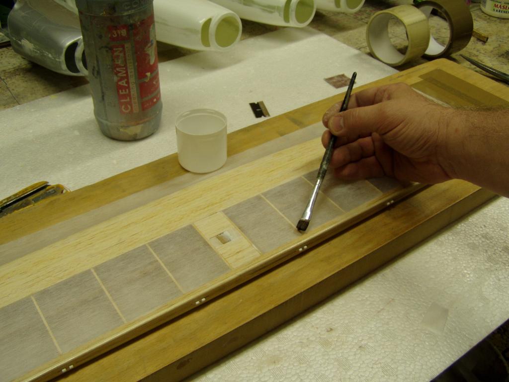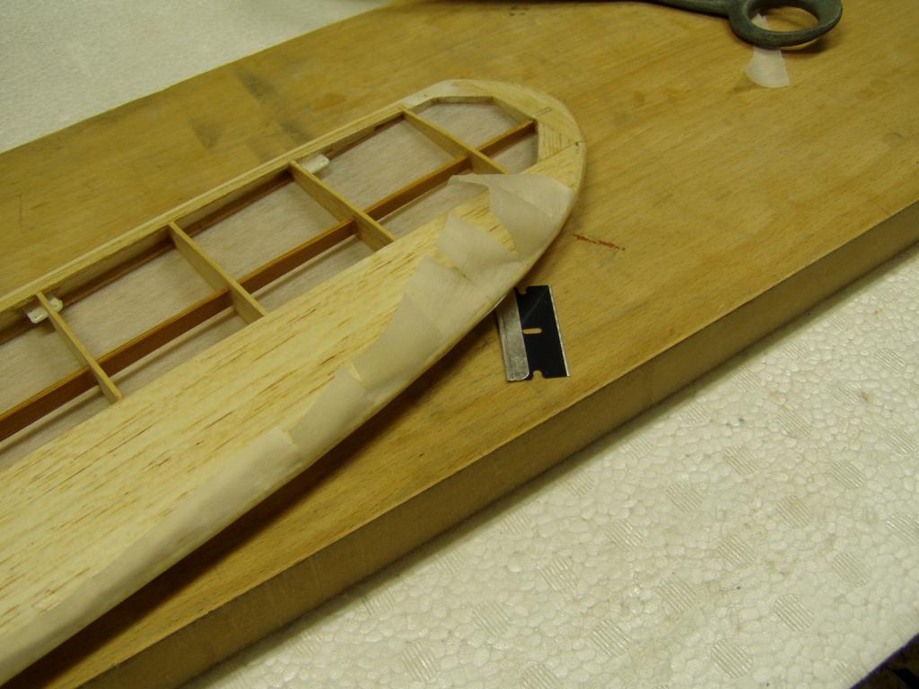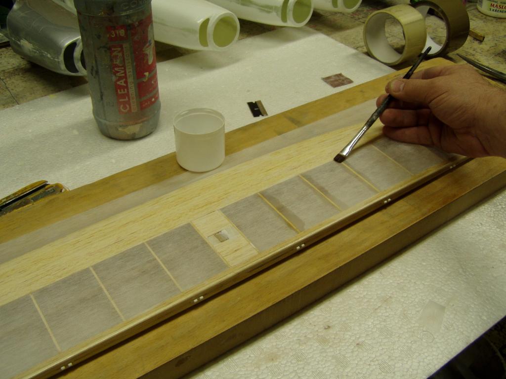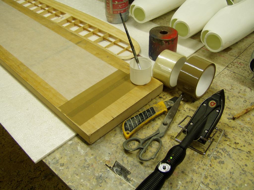 Vedom si odporu Vliesu k ohybani, pouzil jsem lest a odtokovou hranu stabilizatoru potahl tenkym Modelspanem.