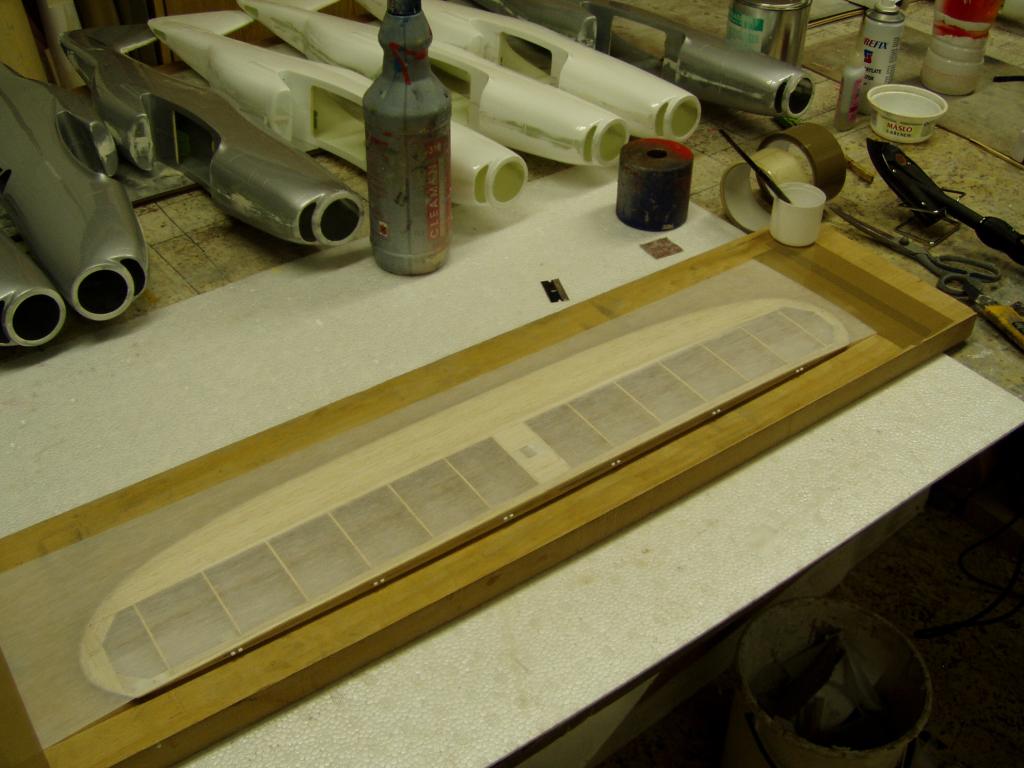 Dale jsem pokracoval obvyklym zpusobem.... stetec,aceton a prilepeni potahu po obvodu konstrukcniho dilu.
