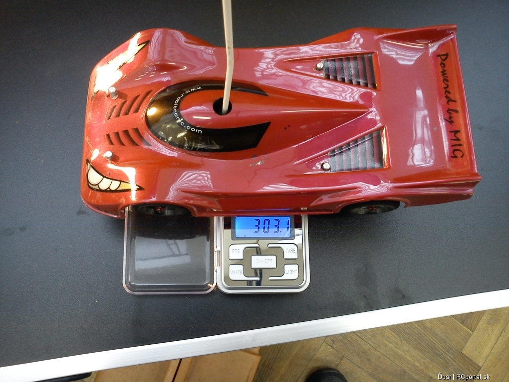 Můj Scalpel vážil 303 gramů, model 1:18 2WD s motorem MIG 280 a lipolkou 2S500 mAh. Novější stroj má s aku 2S800 mAh hmotnost do jízdy 320 gramů